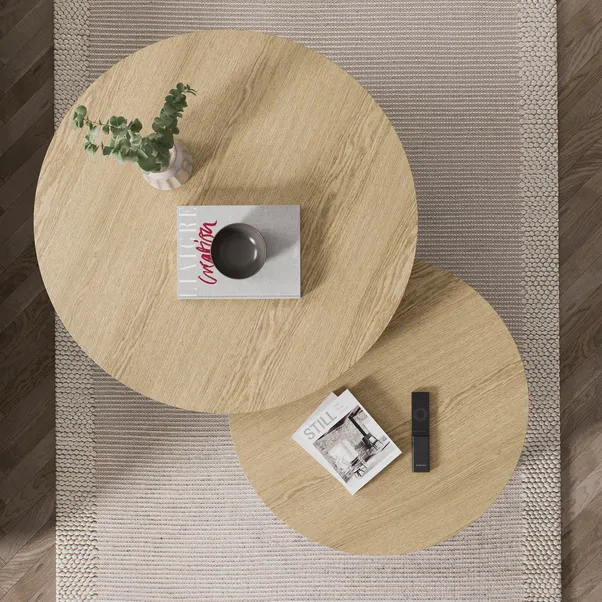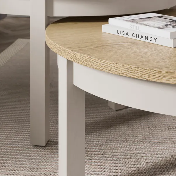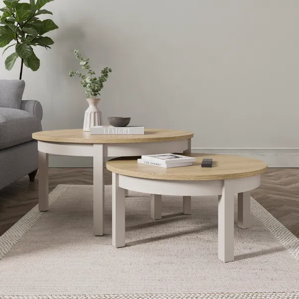 The Olney Round Nest of Coffee Tables is a stylish and space-saving furniture set designed for modern living spaces. Featuring a clean round design, these tables can be used together or separately for added flexibility. Perfect for compact homes, they combine elegance with everyday practicality.