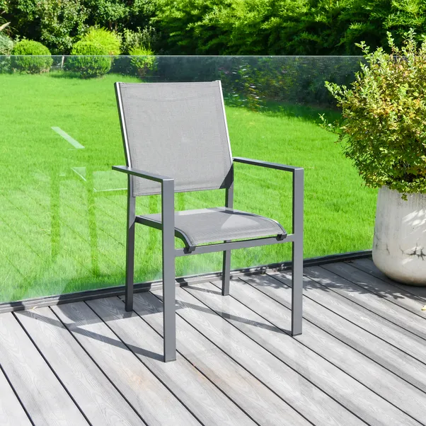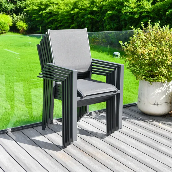 Upgrade your outdoor dining experience with the Prague Textilene 6 Seater Dining Set, combining comfort with modern design. Made with durable textilene and a strong frame, it’s perfect for family gatherings and outdoor meals. The stacking chairs offer convenience and space-saving storage.
